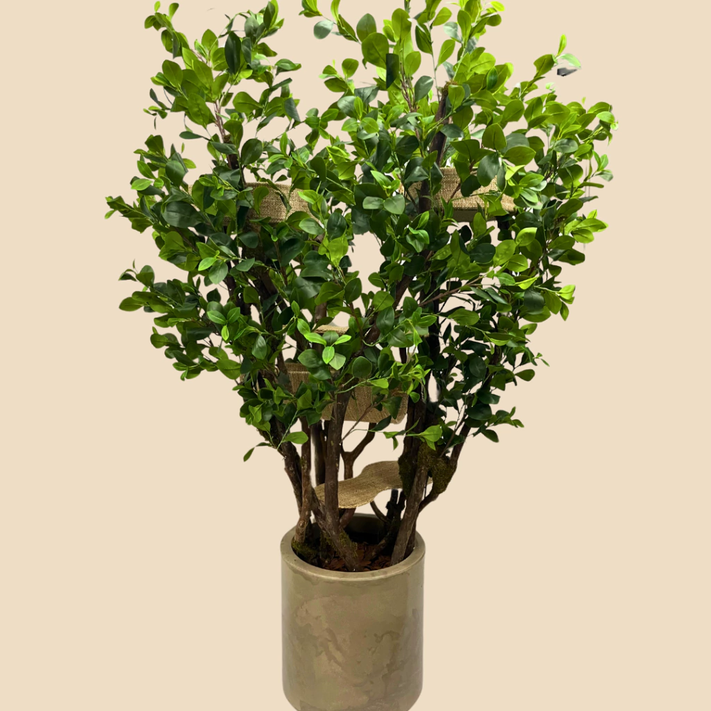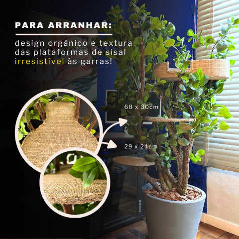 Crafted with carefully selected real wood trunks, each piece has its own unique shape and texture. Premium realistic foliage enhances the natural look and feel, creating an immersive environment for cats.
